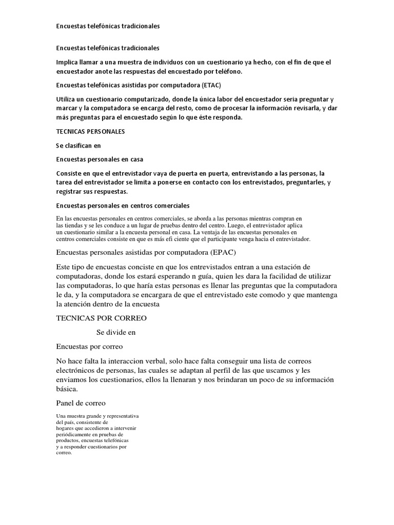 Encuestas Telefonicas Tradicionales Cuestionario Metodologia